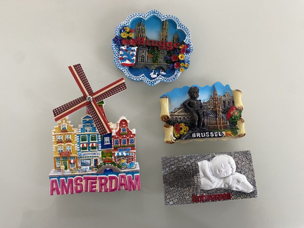 有名なベルギーチョコレートはもちろんですが、それ以上に印象に残っているのが、ベルギー名産の キュベルドン。キュベルドンは、円柱形のカラフルなお菓子で、見た目もとても可愛いです。外側は砂糖でしっかりコーティングされていて、中にはとろっとした、溶けたグミのようなフィリングが入っています。甘さはかなりしっかりめですが、甘いものが好きな人なら絶対に好きな味と食感だと思います。
