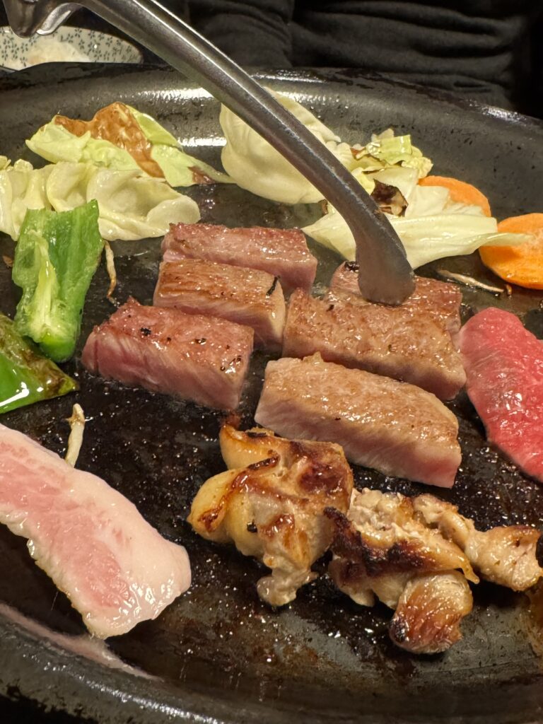 夜は奥飛騨温泉郷へ移動し、夕食は飛騨牛の鉄板焼きをいただきました。