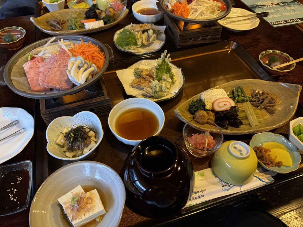 宿ご飯。飛騨牛や山菜がたくさんで最高。