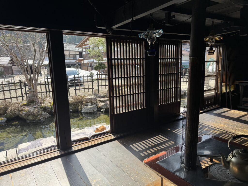 泊まった宿の中からの景色。つまり合掌造りの中から見た景色。