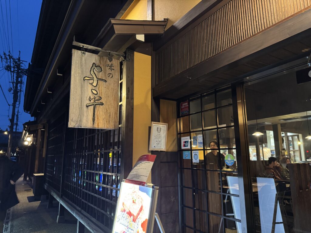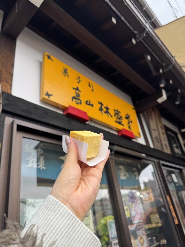 古い町並の通りを歩きながら、食べ歩きも。こって牛は本当におすすめです、とろけた。