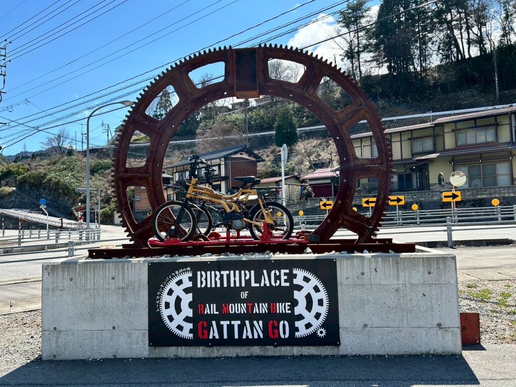 廃線となった線路の上を、自転車型のトロッコで走る体験です。