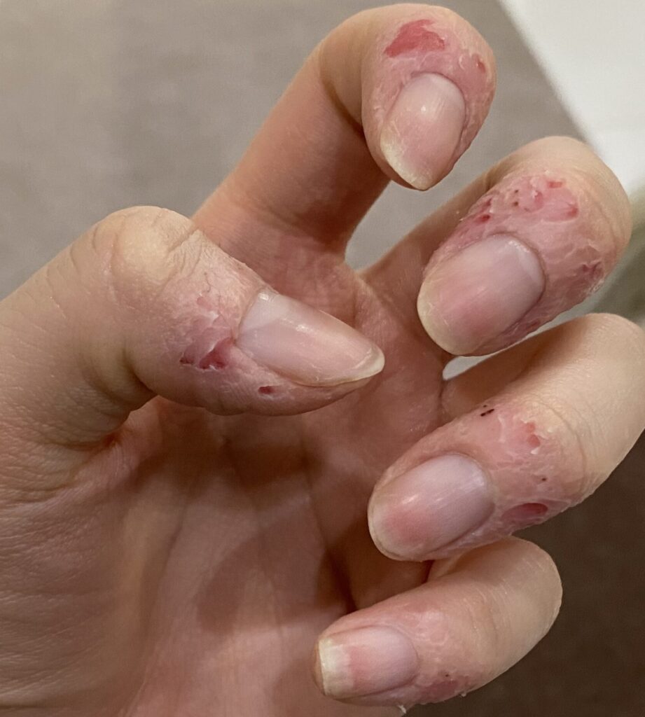 小学生の頃から症状がありましたが、当時は知識がなく、ただ大人に隠すように過ごしていました。学生の頃は落ち着いたのに、大人になって仕事を始めてから、時々再発するようになりました。具体的には、無意識のうちに爪の周りの皮膚を剥いてしまう症状です。